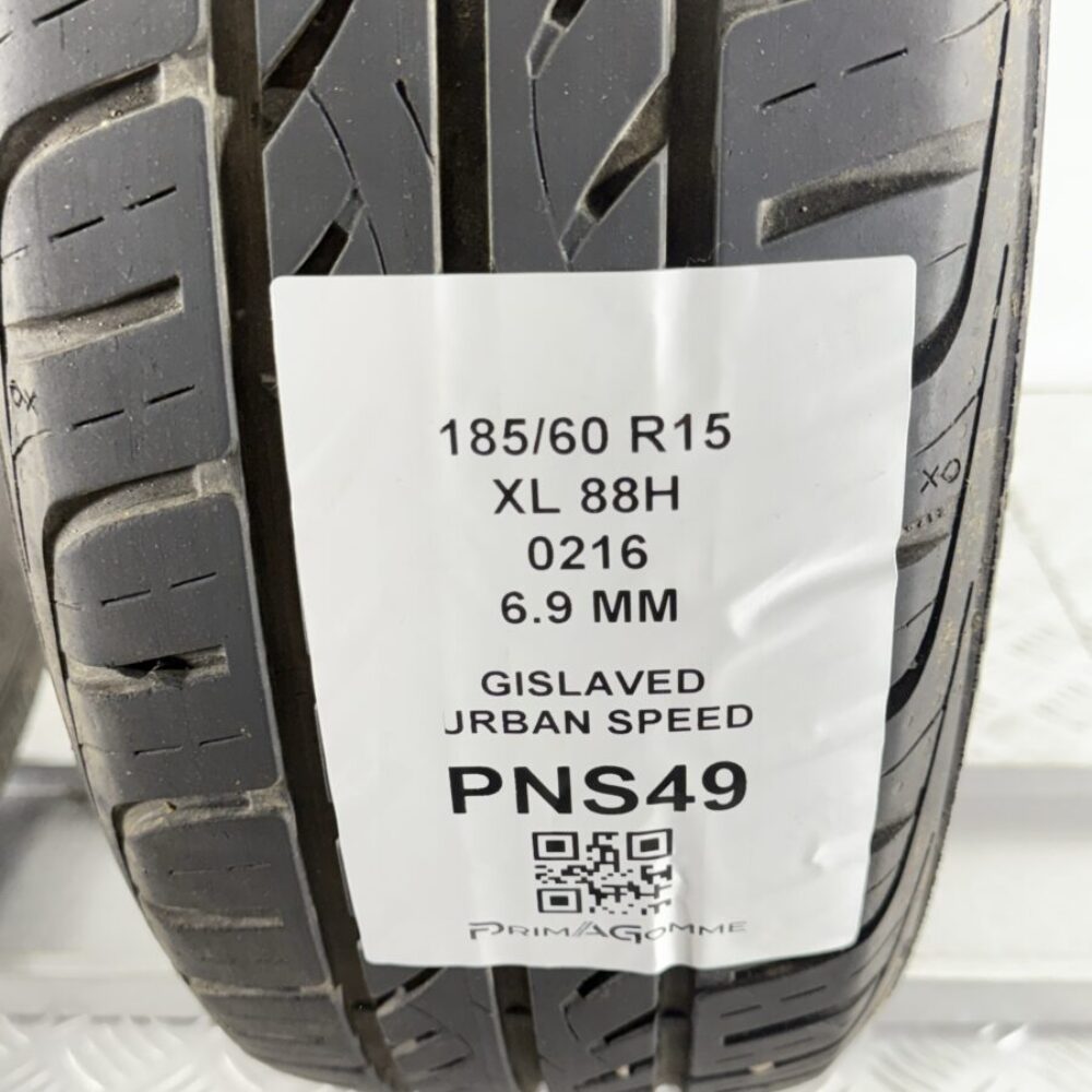 Gomme usate estive Gislaved Urban Speed, ideali per chi cerca pneumatici usati di qualità. Queste gomme auto usate nella misura 185/60 R15, con indice di carico 88H e un battistrada residuo di 6.9 mm, offrono circa il 97% di usura residua. Afi dabilità su ogni percorso, con pneumatici controllati e pronti per il montaggio. DOT: 0216.